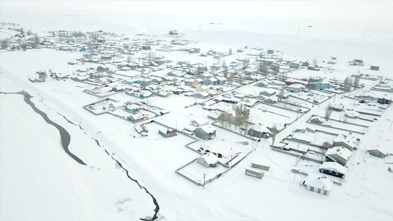 AĞRI (AA) - Ağrı'da yoğun yağış sonrası karla kaplanan tek katlı evler dronla görüntülendi.