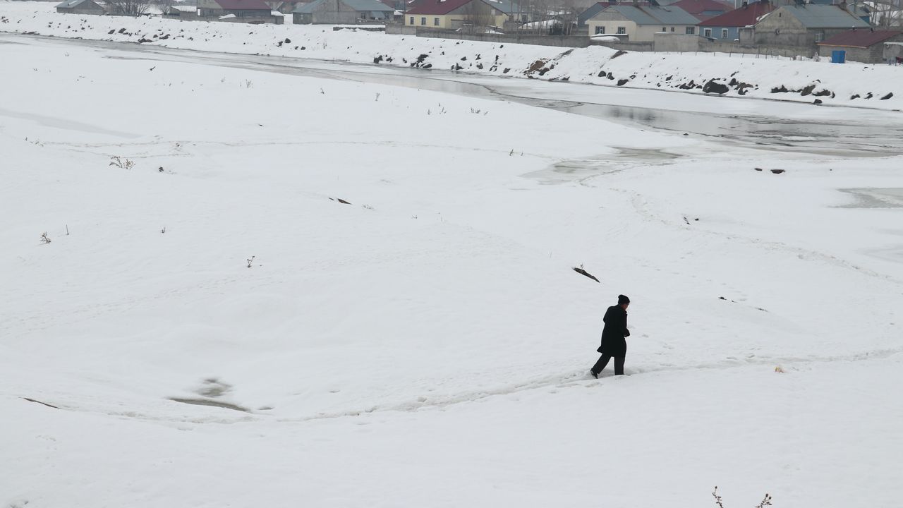 İl merkezinden geçen Murat Nehri ve derelerin yüzeyi buz tuttu.