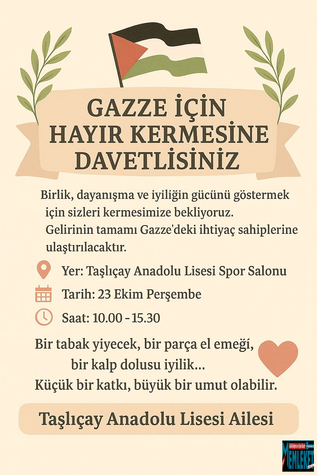 Elde edilecek tüm gelir, Gazze’de yaşanan insani krize bir nebze olsun destek olmak amacıyla Filistin’e bağışlanacak. Kermeslerde ayrıca öğrencilerin hazırladığı mini gösteriler, müzik dinletileri ve dayanışma mesajlarının yer aldığı özel etkinlikler de düzenlenecek.