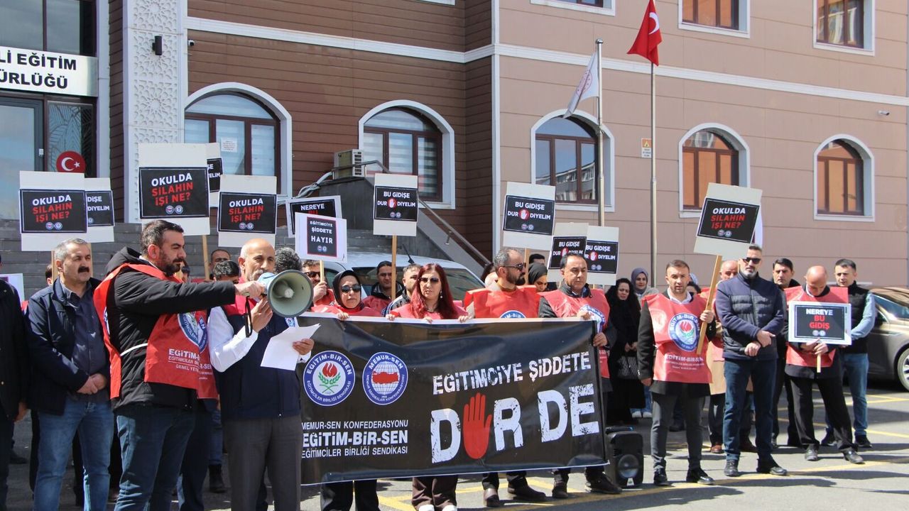 Memur-Sen ile Eğitim-Bir-Sen, Ağrı’da yaptıkları ortak basın açıklamasıyla eğitim çalışanlarına yönelik artan şiddet olaylarına sert tepki gösterdi. Sendikalar, yaşanan son olayların ardından iş bırakma eylemi gerçekleştirerek yetkililere acil önlem çağrısında bulundu.