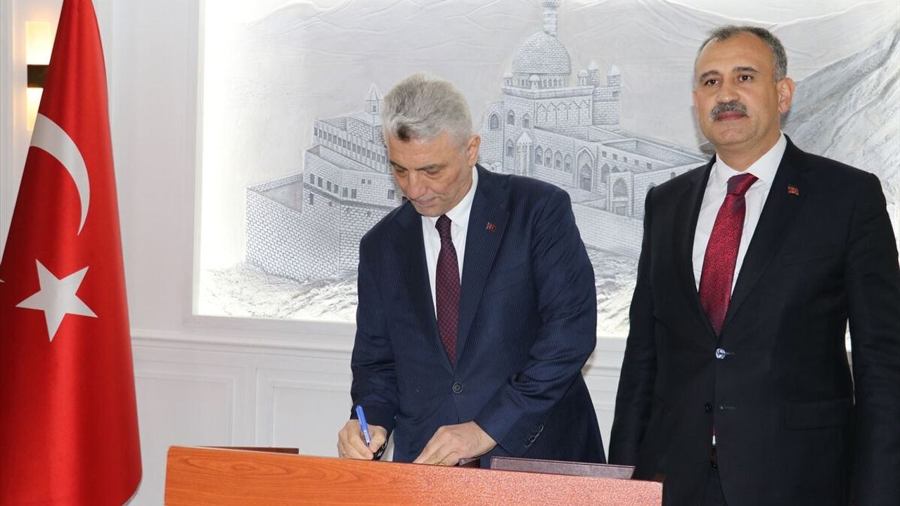 Valilik Şeref Defteri'ni imzalayan Bolat, kentin ticari ve ekonomik gelişimine yönelik yürütülen çalışmalar hakkında Vali Bozkurt'tan bilgi aldı.